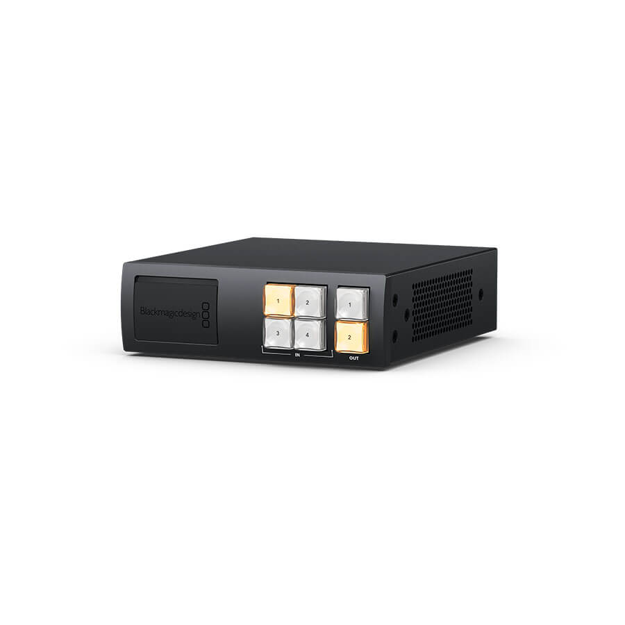 O Blackmagic Videohub Mini 4x2 12G, é um roteador de vídeo compacto com latência zero e compatível com qualquer combinação de SD, HD e Ultra HD ao mesmo tempo. Oferece 4 entradas SDI 12G e 2 saídas SDI 12G em um tamanho compacto de 1/3 de unidade de rack de largura. O painel de controle frontal, permite rotear rapidamente uma conexão de vídeo e inclui até uma conexão de emergência SDI 12G para integrar equipamentos externos e saída de vídeo USB-C para webcam. Também conta com retemporização SDI, controle Ethernet externo e suporta todos os padrões de vídeo SDI até 2160p60.