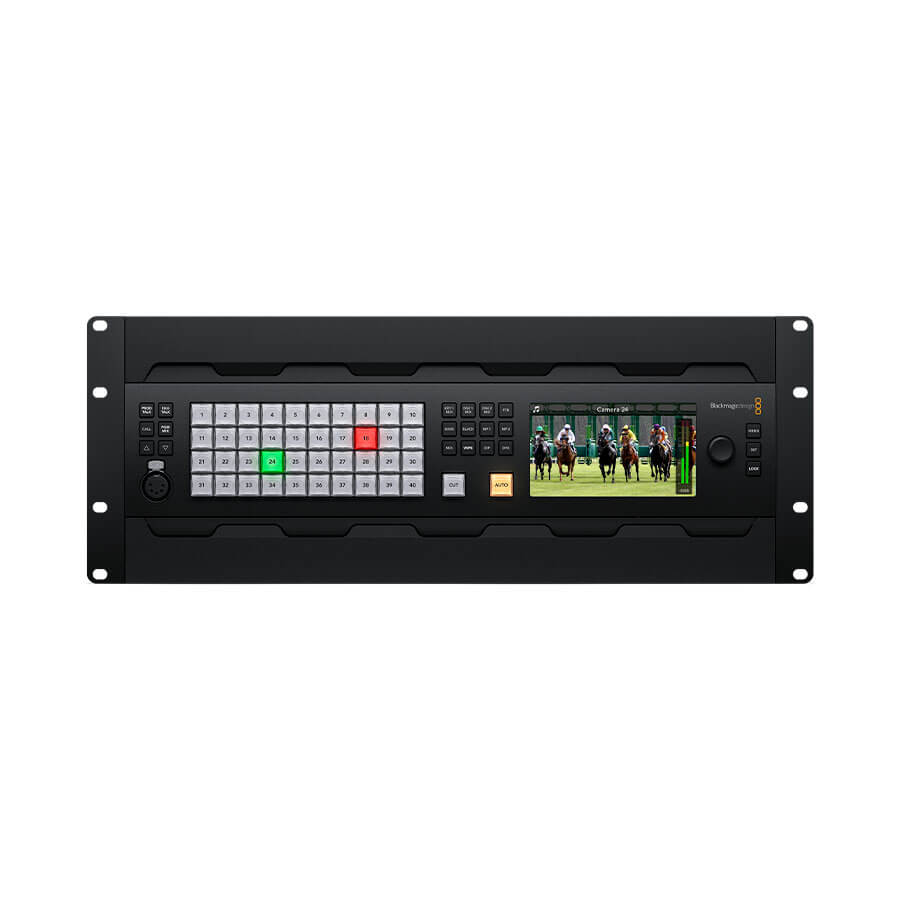 O Blackmagic ATEM 4 M/E Constellation 4K Plus, é um switcher robusto de produção ao vivo 4 M/E Ultra HD. Inclui 80 entradas SDI 12G com conversão de padrões, 48 saídas SDI 12G auxiliares, 4 DVEs, 16 Chaveadores Croma ATEM Avançados, 4 leitores de mídia, 4 multivisualizadores Ultra HD independentes, 2 processadores SuperSource e muito mais. Também oferece intercomunicação integrada e um mixer de áudio Fairlight profissional de 156 canais com equalização e dinâmica.