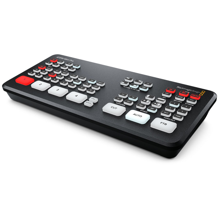 Semelhante ao seu antecessor, o ATEM Mini, o ATEM Mini Pro da Blackmagic Design, é um switcher de produção ao vivo de quatro entradas, com um painel de controle integrado projetado para transmissão ao vivo de várias câmeras até vídeo HD para a Internet ou aplicativos de transmissão de consoles de jogos, fluxos de computadores corporativos ou câmeras HD. Juntamente com a atualização do controle de software, o Mini Pro se baseia no Mini com recursos como taxa de dados de transmissão ao vivo e informações de status, um codificador de hardware integrado, gravação simultânea em unidades USB, drive hot swapping com o Blackmagic MultiDock, botões de gravação e transmissão adicionados, cache de transmissão, um gerador de timecode, visualização múltipla de programas, suporte a tally e Blackmagic Pocket Cinema Camera 6K e 4K para utilizar como suas fontes de transmissão.